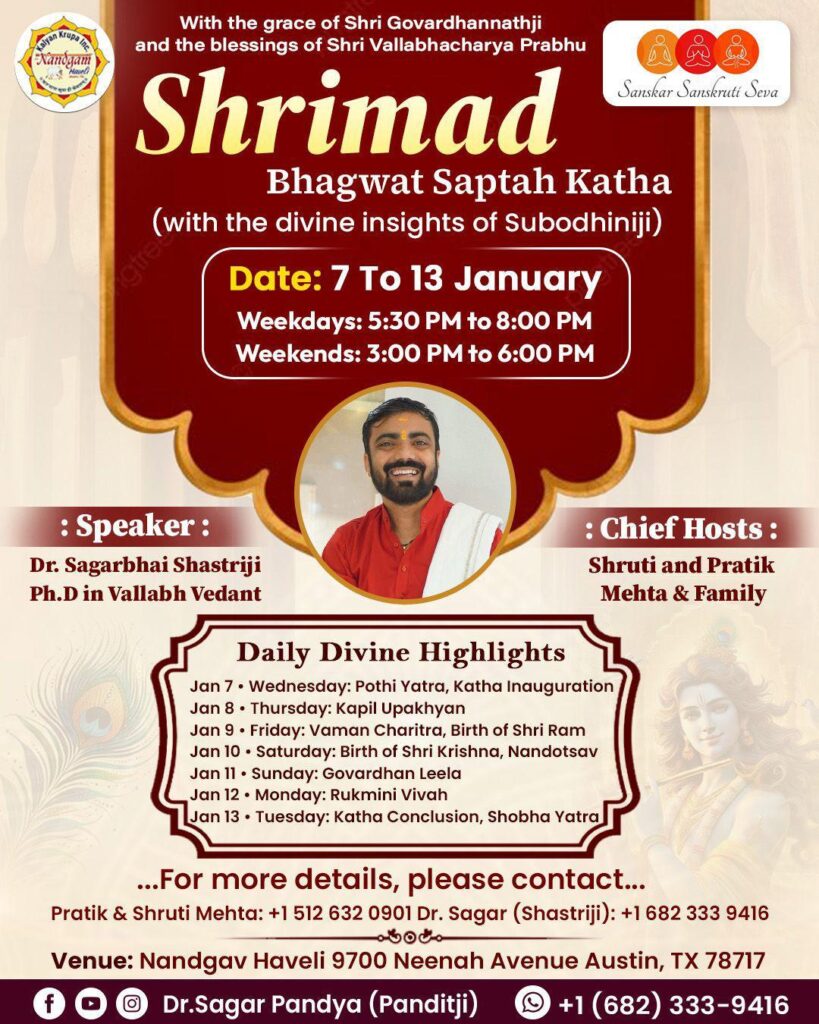 Join us for a spiritual week of Bhagwat Saptah Katha! 📚✨